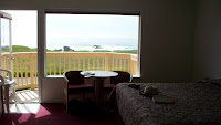 Stuffed to the gills with Betty's wonderful food, we headed off on the freeway to who knows where. Stopped off at Healdsburg (http://www.healdsburg.com/) for a quick break where the people were impossibly friendly and everything looked as if it came straight out of Stepford Wives - very buffed and polished women gliding around doing 'antiquing', wine tasting and shopping (Ty got a little pressie from Fideaux - a shop specialising in clothing for dogs!) and then we drove on to Fort Bragg and booked into the Ocean View Lodge with a fantastic view of ... yes, the ocean!